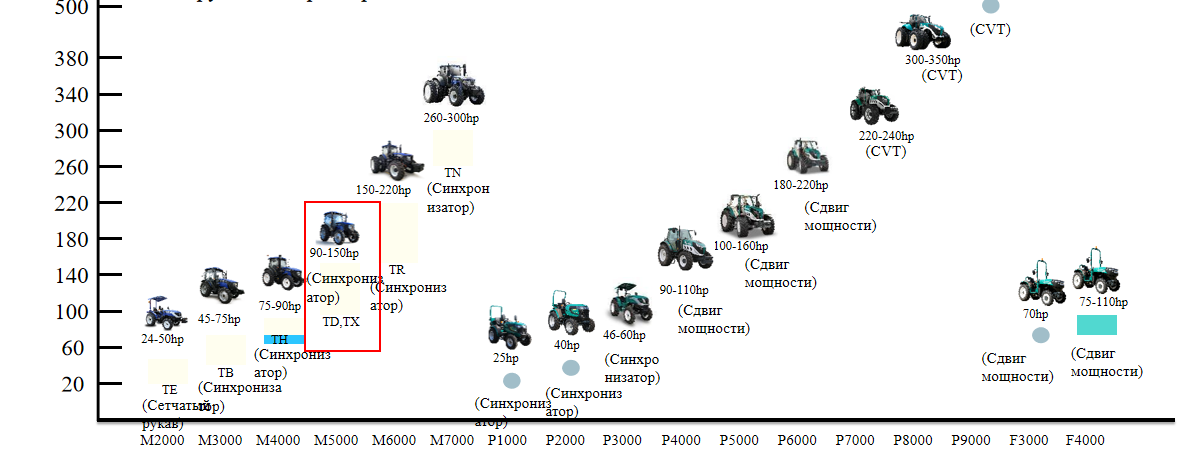 В настоящее время в портфолио тракторов Lovol входят три семейства: M, P и F, мощностью от 20 до 300 лошадиных сил, охватывающие различные технические аспекты, такие как зацепляющие втулки, синхронизаторы, переключение передач под нагрузкой и вариатор.
